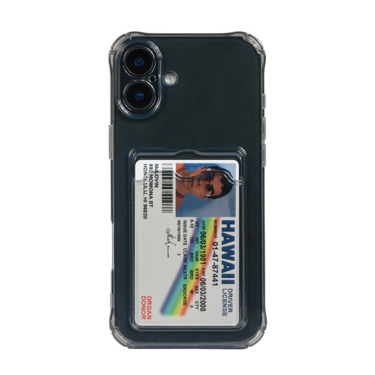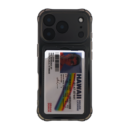 This McLovin card holder dark transparent iPhone cover is a must-have for anyone looking to combine style and functionality. The sleek design allows for easy access to your cards while protecting your phone. With a transparent back, you can showcase the elegant design of your iPhone.